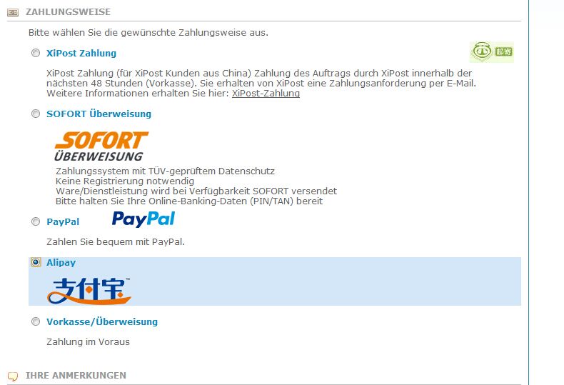 支付方式:支付宝、PP、xipost pay(西邮寄支付)