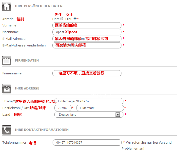 2、填写注册信息,星号为必填项: