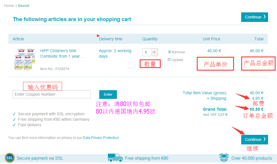 包邮政策:德国境内购物满80欧免运费,80欧以内德国境内统一4.95欧!