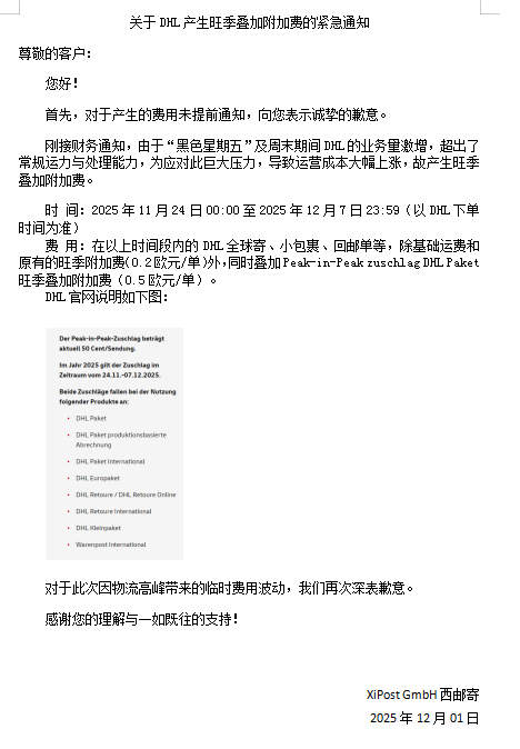 DHL优先包运费