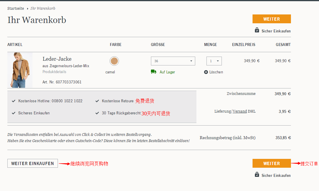包邮政策:不包邮(德国境内DHL和Hermers运费3.95欧)